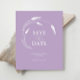 Announce your engagement with this budget save the date sheet. It features lavender line art in white with a mix of classic and script typography in white over a solid purple background. All the colors can be customized to suite your wedding color scheme. Use the template fields to personalize with your name and wedding date. A minimal yet elegant design for garden wedding ideas on a budget. To see the matching wedding stationery suite visit www.zazzle.com/dotellabelle