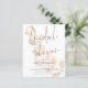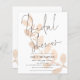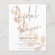 A value for money BUDGET alternative on a smaller size 4.5 x 5.6” semi-gloss 110lbs weight, which is of similar thickness to a postcard (however is not suitable to use as a postcard.). PLEASE NOTE there is ONE invite per sheet. Budget Leaves Script Bridal Shower Invitation. This modern design for your Bridal Shower Invitees has set elegant script for Bridal Shower at the top and easily personalise with your details beneath. A tinted background of artsy peach leaves runs from the bottom to the top beneath the typography and is also on the other side.
