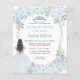Dusty Light Baby Blue Silver Gray Glitter Sparkle Floral Princess Tiara Quinceañera Invitation