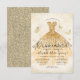 Budget Light Yellow Gold Glitter Gown Quinceanera Note Card