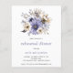A budget price smaller 4.5" x 5.6" paper alternative. Envelopes are an optional extra. A bouquet of beautiful lilac, purple and cream watercolor florals and foliage is at the top and stylish typography is below which is easily personalised to the details of your Rehearsal Dinner. A coordinating lilac colored background is on the back.