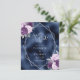 This elegant modern wedding save the date card features a silver geometric frame decorated with lilac, purple and silver floral bouquets on a navy blue faux foil background. The customizable text combines silver gray whimsical handwriting, copperplate and italic fonts.