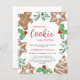 This budget Christmas baby shower invitation is decorated with watercolor cookies, holly, mistletoe, and berries. It says "Our Little Cookie Is On The Way" in stylish script typography. Easily customizable. Original Watercolor © Mi