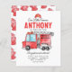 Cute Our Little Fireman Helmet Fire Truck Firefighter Birthday Invitation