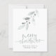 Budget Logo Minimal Merry Christmas Small Card. A budget price SMALLER 4.5” x 5.6” flat card for your festive greetings on a shiny SEMI GLOSS 110 lb card stock (similar to the thickness of a postcard) PLEASE NOTE: The envelope supplied with this card is slightly larger than the card itself. Contemporary style with lots of white space, Merry Christmas is in an elegant set script and the rest of the text on each side you can easily personalise, On the back replace the sample image with your business logo or remove this if preferred. An artsy sprig of winter white and soft powder blue foliage is on the front at the top and coordinating powder blue on the back. Text and background colors can be changed if you wish to better suit your image and branding via the customise further option.