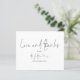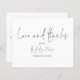 Love and Thanks Future Mrs Bridal Shower or Hen Party. A budget price SMALLER 4.5” x 5.6” alternative. Available in a SEMI GLOSS 110 lb CARD STOCK which is the default option (recommended for invitations), OR a SATIN FINISH 80 lb THINNER PAPER STOCK (ideal for enclosures). Envelopes are an optional extra and are slightly larger than the card size. Love & Thanks and The Future Mrs are set in an elegant handwriting style script on the front and the rest of the text on each side you can easily personalise with your names, and your thank you message. Shown in black and white, however can be changed to any color of your choice via the customise further option.