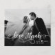 Budget Elegant Modern Handwriting Wedding Photo "Love and Thanks" script Thank You personalized affordable low budget flyer. Stylish wedding thank you card template featuring a full horizontal photo on the front with overlay text "Love and Thanks" in a swirly hand lettered calligraphy script overlay with swash in white on the picture.