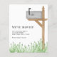 It is decorated with a watercolor mailbox, grass, and modern typography.