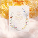 Celebrate the mommy-to-be with this beautiful wildflower baby shower theme. These budget invitations feature a delicate frame of hand-painted watercolor flowers arranged in an elegant oval shape. There are four little honey bees hidden among the flowers, can you find them all? Inside the floral border, the event details appear in beautiful typography combined with modern script calligraphy. The message starts with a simple invite, "baby shower" in lowercase serif letters, "Mama to Bee" in the chic lettering script, followed by the mom's name in bold capitals. The date and time information has a unique layout, with the day curved over the top, the date in flowing script, and the month and time on either side. The rest of the celebration details are written underneath. We have chosen summery yellow and orange colors to make the important text stand out, but if you want to, you can change them to any color of your choice! The background of the cards is a warm off-white color. Cards reverse to a pinky beige background with a cute little dots pattern. We have used "mama" as the template text, but you can change this, too! Simply click "Personalize" to edit the text and "Click to customize further" to access Zazzle's Design Tool. There you will be able to change placement, colors, background, fonts, and more! As part of the budget selection on Zazzle, this sheet isn't a standard invite size or paper quality. If you want this design on an invitation card you can find it in our store or use the Zazzle Make Machine to transfer it onto the product of your choice. Perfect for a spring baby shower or summer baby shower. Great for indoor or outdoor events, rustic or garden themes. We have a collection of matching items and other invitation options, you can view it below the product on this page. Browse our store for more boho baby shower invitations!