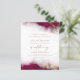 This elegant wedding invitation features a burgundy red watercolor border design in imitation of marble veined with faux gold foil, fading gradually into the white background. The word "wedding" appears in gold-colored handwriting script, with the remaining text in gold-colored serif capitals. The reverse side provides space for wedding details, along with a QR code guests can scan to visit your website and RSVP.