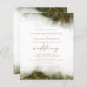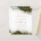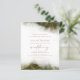 This elegant wedding invitation features an olive green watercolor border design in imitation of marble veined with faux gold foil, fading gradually into the white background. The word "wedding" appears in gold-colored handwriting script, with the remaining text in gold-colored serif capitals. The reverse side provides space for wedding details, along with a QR code guests can scan to visit your website and RSVP.