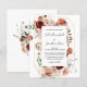 Soft dusty terracotta orange is definitely this Fall's It color. Pair it with deep marsala red and blush pink and you have a very trendy and pretty Autumn color combination. I chose to keep the overall design light and airy, incorporating open gold line flowers. The flowers and foliage decorate a delicate gold geometric frame. A coordinating floral bouquet decorates the invitation back. This item is part of the Marsala, Blush and Terracotta collection.