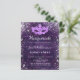 For an elegant Masquerade, Quinceañera, 15th birthday. A deep purple floral lace pattern as background. Decorated with faux silver glitter dust and a masquerade mask. Personalize and add a name, age and party details. The name is written with a hand lettered style script