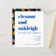 Budget Boho Matisse Botanical Shapes in Black Pink and Blue Wedding Invitation