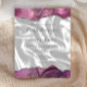 The top and bottom edges of this elegant modern wedding invitation feature a mauve watercolor agate border trimmed with faux silver glitter. The customizable text combines handwriting, sans serif and italic fonts in charcoal gray on a background image of white silk. The reverse side features a matching mauve agate and white silk design.
