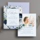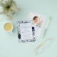 This is an elegant and modern funeral invitation card printed on a budget friendly flyer to celebrate the life of your loved one. The design features a beautiful calligraphy font and delicate botanicals of blue, green, white and silver, with a photo on the back. This invitation can easily be personalized with your own photo and text to create a special tribute for your loved one's funeral, memorial or celebration of life using the template provided.