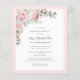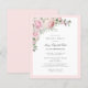 Elegant celebration of a life invitation features a pink rose floral arrangement. The deceased person's name is written in a traditional script text. All of the text can be easily edited to create a personal remembrance.