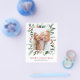 Budget Merry Christmas Photo Card and customized picture and name with Holiday Greenery, Holly Berries and Red Background.