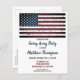American Flag Soldier Going Away Party Invitations. This rustic American Flag party invitations are perfect for a soldiers going away party, military deployments send off, military welcome home celebration, military graduation, and military retirements. Personalize this american flag invitation with your soldiers event, name, and party details. These budget retirement invitation postcards need to be mailed as oversized postcards so may incur standard postage fees but they don't need an envelope or a return address label.
