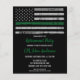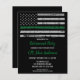 Thin Green Line Military Retirement Invitations or Military Going Away Party Invitations. This Thin Green Line Army party invitations are perfect for a military retirement, military deployments send off, military welcome home celebration, military graduation, and soldiers going away party. Perfect for all military, army, border protection, border patrol, conservation officer, park ranger, game warden, federal law enforcement. Personalize this military flag invitation with your soldiers event, name, and party details.