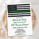 Thin Green Line Military Retirement Invitations or Military Going Away Party Invitations. This Thin Green Line Army party invitations are perfect for a military retirement, military deployments send off, military welcome home celebration, military graduation, and soldiers going away party. Thin Green Line Flag represents all military, army, border protection, border patrol, conservation officer, park ranger, game warden, federal law enforcement. Personalize this military flag invitation with your soldiers event, name, and party details.