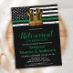 Thin Green Line Military Retirement Invitations. Celebrate years of dedicated service, your military retirement and invite friends and family to your military party with this rustic Thin Green Line Flag with Gold Army Boots Military Retirement Invitation. USA American flag design in Police Flag colors, worn black green white and gold design. This military retirement invitation is also perfect for military graduation, soldier going away part, deployments and homecoming, change venue in personalization. See our collection for matching military retirement gifts, military retirement party favors, and supplies. COPYRIGHT © 2021 Judy Burrows, Black Dog Art - All Rights Reserved. Military Thin Green Line Flag Retirement Party Invitation