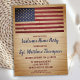 Patriotic Rustic American Flag Military Welcome Home Invitations. Invite friends and family to your soldiers welcome home party with this USA flag patriotic military invitation. USA American flag design on rustic wood distressed worn design.. This military welcome home invitation is also perfect for military retirement invitations,military deployments send off, soldiers going away party invitations, change venue in personalization. Personalize this american flag invitation with your soldiers event, name, and party details. See our collection for matching military welcome home gifts,party favors, and supplies. COPYRIGHT © 2021 Judy Burrows, Black Dog Art - All Rights Reserved. Budget Military Welcome Home Party Invitation
