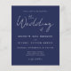 Budget Minimal Navy Blue Script Wedding Invitation