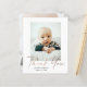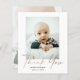 Budget Minimal Script Photo Baby Thank You Card. The back includes a message from the family and a 2nd photo. Click the edit button to customize this design with your photos and details.