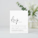 A value for money BUDGET alternative on a smaller size 4.5 x 5.6” semi-gloss 110lbs weight, which is of similar thickness to a postcard (however is not suitable to use as a postcard.). PLEASE NOTE there is ONE invite per sheet. Budget Minimalist Black White Script Wedding RSVP. The header is in an informal set handwriting style and with the details below.