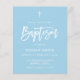 Budget Minimalist Blue Boy Baptism Invitation: Celebrate your son's baptism with this affordable yet elegant invitation. Featuring a clean, minimalist design in a serene blue color palette, it includes a subtle cross motif and modern typography. Perfect for families looking for a simple yet meaningful way to invite loved ones to this special occasion.