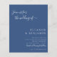 Budget Elegant Minimalist Chic Script Wedding Invitation with RSVP website; french blue background with white text
