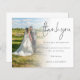 Minimalist Photo Script Wedding Thank You. A budget price SMALLER 4.5” x 5.6” alternative. Available in a SEMI GLOSS 110 lb CARD STOCK which is the default option (recommended for invitations), OR a SATIN FINISH 80 lb THINNER PAPER STOCK (ideal for enclosures). Envelopes are an optional extra and are slightly larger than the card size. Simply replace the sample picture with your own to this elegant Wedding Thank You. Thank you is in a set handwriting style and the rest of the text you can easily personalise. A graduated tint opacity layer is on top of your photo so your text can be seen as it is partially overlaid on top.