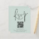 A value for money BUDGET alternative on a smaller size 4.5 x 5.6” semi-gloss 110lbs weight, which is of similar thickness to a postcard (however is not suitable to use as a postcard.). PLEASE NOTE there is ONE invite per sheet . Mint QR Code Script Wedding RSVP. A convenient option enclosure to ask your guests to scan your QR code to your wedding website to RSVP. A stylish set typography in black for the main heading RSVP complementing the rest of the text which you can easily personalise.