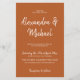 Elegant trendy typography all in one RSVP details QR code low budget wedding invitation printed on a PAPER FLYER (advertising type of paper suitable for folded mailings) in simple burnt orange terracotta and white hand lettering featuring bold bride's and groom's names calligraphy script. ++++++++++++++++++ You can change the colors of text and background after selecting CUSTOMIZE further option. ++++++++++ The invitation is suitable for any season - spring, summer, autumn fall, winter wedding reception. +++++++++++++++++++++++++++++ PLEASE READ THIS BEFORE PURCHASING! This is a cheap budget invitation printed on a FLYER and suitable for folded mailings +++ Please note that BUDGET PAPER IS THIN - You can upgrade to have it printed on cardstock ++++ ENVELOPES NOT INCLUDED. You can upgrade to a cardstock version.
