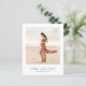A budget, modern, and minimalist baby shower invitation featuring one of your favorite pregnancy photoshoot photos! The front of this card features the baby's name and due date in chic, sans-serif capitals underneath the photo of your choice. Cards reverse to the event details in classic black and white typography. The first half of the text is aligned to the left, and the second half to the right. Between the two sections, there is a dotted divider. The text is the same stylish combination of fonts as the front of the card, with added script lettering for "baby shower" and lowercase sans-serif wording for the venue and registry information. For the template text, we have opted for a baby girl's name, but this design is gender-neutral. For a gender reveal we suggest using the baby's surname instead of first name! We have chosen a photo with a boho desert color scheme, but this black and white design is sure to work with any picture! If you want to change the names to a different color or font, or edit punctuation and placement, simply click on "Personalize" and "Edit using Design Tool" to access the advanced editing options. Note that the "baby shower" text is a fixed image, as it was hand-written, so if you would like that to be changed, you can contact me through the "Message" button above and I'll be happy to help! As part of the budget selection on Zazzle, this sheet isn't a standard invite size or paper quality. If you want this design on an invitation card you can find it in our store or use the Zazzle Make Machine to transfer it onto the product of your choice. Check my store for more baby shower invitations!