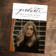 Budget Modern Calligraphy Two Photo White Graduation Announcement features minimal typography and one photo on the front, along with a second photo on the back and optional details.