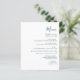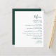 This simple modern wedding menu features emerald green text on a white background. The word "Menu" appear in stylish handwriting calligraphy. Add the couple's name and wedding date in script and italics, along with menu detail in sans serif font. The reverse side is a matching shade of solid emerald green.