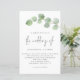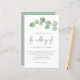Modern Eucalyptus Wedding Invitation. A LARGER size 5.5” x 8.5” at a budget price, on a SEMI GLOSS 110 lb CARD STOCK, great for invitations, at roughly the same thickness as a postcard, or an elegant 110 lb LINEN stock – for a luxury, slightly thinner feel at great value. PLEASE NOTE THE OPTIONAL ENVELOPES ARE A LITTLE BIGGER IN SIZE AT 6.75” x 9” approx. This budget size alternative is also available in other paper choices. The FELT 100 lbs paper is buff colored, NOT white, so adds a rustic touch. The MATTE 80lbs paper stock is bright white, for crisp printing, great for your menus and programs, whilst the SATIN 80lbs paper is thin and light, ideal for enclosures. An informal set typography in black for the main heading the Wedding Of complementing the rest of the text which you can easily personalise. A branch of modern green eucalyptus leaves runs above and on the back is a coordinating shade of green.