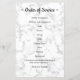 Modern White Marble Unique Memorial Funeral Program / Celebration Of Life Program. These sympathy funeral program feature a unique photo collage for 5 of your favorite photos, monogram initial and name, a heartfelt Quote "In Loving Memory....Quote " Those we love don't go away, they walk beside us everyday, unseen unheard, but always near. still loved still missed, and very dear. " ...Forever in our Hearts" on a modern white marble design. Personalize this celebration of life funeral program with your loved ones photos, name & dates, order of service, and thank you acknowledgment . ...COPYRIGHT © 2020 Judy Burrows, Black Dog Art - All Rights Reserved. Budget Modern Marble Memorial Funeral Program