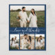 Budget, Modern, Elegant, Minimalist Navy Hand Lettered Wedding Four (4) Photo Collage Thank You personalized affordable low budget THIN card. Stylish wedding thank you card template featuring 4 photo on the front and one photo on the back. ***PLEASE NOTE! *** BUDGET PAPER/FLYER IS THIN. *** UPGRADE THE PAPER FOR A THICKER PAPER. *** With the text "Love and thanks" in a swirly hand lettered typography script swash-tail font in white color on dark navy blue color background. Personalize the custom name and thank you message. Little heart between the names. If you prefer to handwrite your note, just delete the sample text. If You need help or matching item, please contact to me!