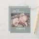 This simple modern photo collage birth announcement card is perfect for sharing the good news of the arrival of your baby. It features a single photo on the front side with a modern heart script with the word "introducing" on a dusty sage green background. The backs side features a three photo collage. Add your baby's name and birth stats to personalize the card.