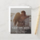 Simple elegant trendy engagement photo double sided casual destination BUDGET AFFORDABLE wedding save the date card template in neutral black and white typography. Suitable for modern weddings.