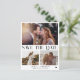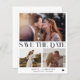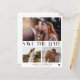 Simple elegant trendy engagement photo collage double-sided BUDGET AFFORDABLE wedding save the date card in neutral black and white. Suitable for modern spring, summer, fall, or winter weddings.