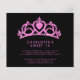 Budget Modern Pink Glitter Sweet 16 Birthday Party Invitation - featuring a sparkling, pink glitter tiara on a black background. Invitation also features, simple, modern typography for a minimalistic look. The back of the invitation is coordinating pink glitter. Invitation is part of a collection.