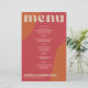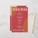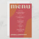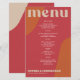 Abstract shapes retro vintage 70s style unique budget affordable wedding menu card with bold typography in a vibrant trendy modern red, beige tan and orange terracotta boho chic color palette. +++++++ Please note that all the colors are changeable. ++++++++++++ Suitable for informal casual stylish contemporary weddings.