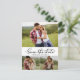 Elegant Modern Sophisticated Calligraphy Collage Wedding Save The Date Budget Postcard, harmonizing contemporary style with timeless charm. Embrace the allure of a striking 3 (three) grid photo collage intertwined with elegant hand-lettered calligraphy, tailored perfectly for modern weddings. The reverse side allows for seamless customization, featuring a full photo adorned with a delicate translucent overlay to effortlessly add your wedding specifics. Personalize this card effortlessly with your beloved photos and wedding details, ensuring a one-of-a-kind and unforgettable announcement for your special celebration.