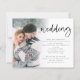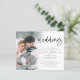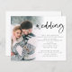 Budget Modern Script Photo QR Code Wedding Invitation. A budget price SMALLER 4.5” x 5.6” alternative. Available in a SEMI-GLOSS 110 lb CARD STOCK which is the default option (thicker for invitations), OR a SATIN FINISH 80 lb THINNER PAPER STOCK (ideal for enclosures). Add your QR code to your wedding website on the back making this a convenient option for your guests to RSVP and see all the details without the need for separate RSVP and details cards. Your QR code will be automatically generated to update the sample code in the design, when you simply change the sample URL in the template with your own wedding website URL. A minimalist fun design to let everyone know your happy news. Simply replace the sample photo with your own favorite. A gradient overlay layer is on top of your photo so it fades out as it reaches the center with the text partially overlaid on top. Wedding is in a modern set script and easily personalise the rest of the text.