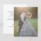 Simple minimalist elegant chic wedding dark overlay thank you calligraphy script personalized budget affordable card with one full bleed photo and your custom text and signature. ++++++++++ PLEASE READ THIS BEFORE PURCHASING! This is a budget affordable wedding card printed on a paper sheet (each sheet has one card). ++++ For the best rapport price-quality, our advice is to choose the Semi-Gloss paper type (it is thick enough to be used for stationery) ++++ If you need envelopes, choose the ENVELOPE OPTION. +++ Double-check all the information and spelling of your text because you will receive exactly what you see - no one else will check anything before printing. ++++ This card is designed for size 4.5" x 5.6". In the case you choose another size of the card and text goes outside page, everything needs to be fixed before adding the product to cart. Please ask Live Design Service for help.