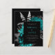 This elegant, moody wedding invitation features a lush, romantic floral bouquet in teal blue with silver faux foil and glitter foliage on a black background. Customize the teal and silver gray text in stylish fonts on a dark rectangle. The reverse side provides space for wedding details on a solid black background, along with a QR code guests can scan to visit your website and RSVP, which saves the cost of printing and mailing separate RSVP cards.